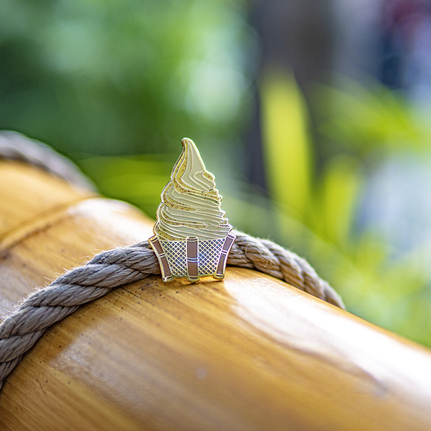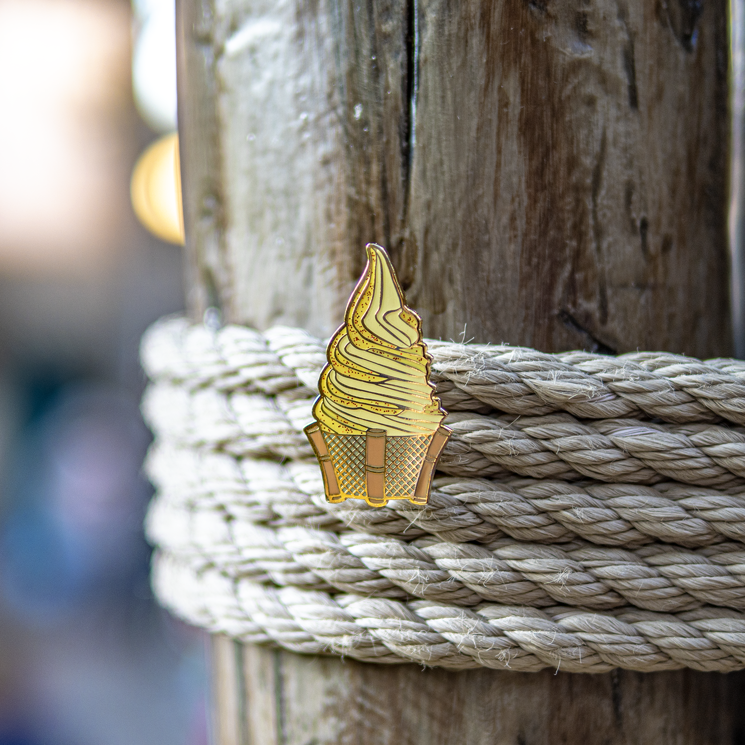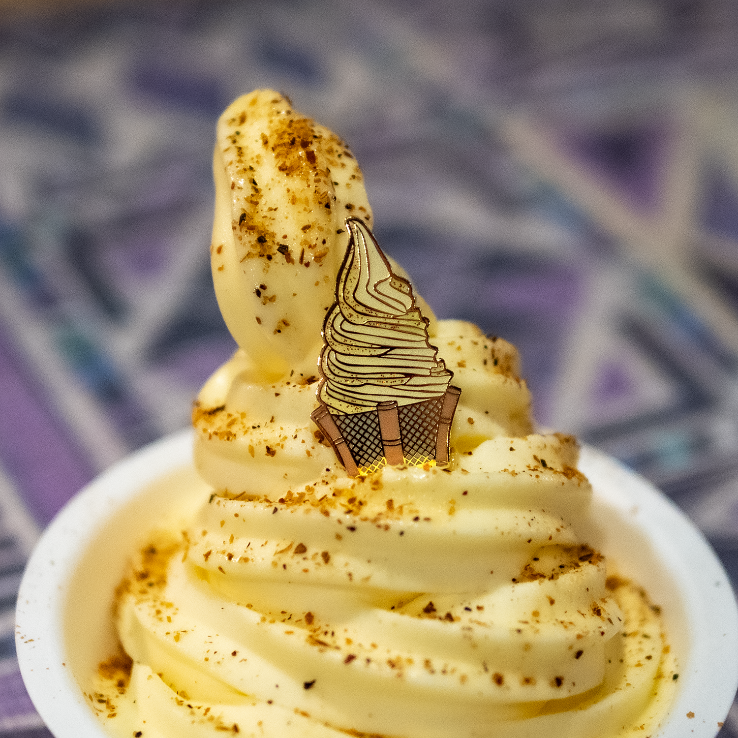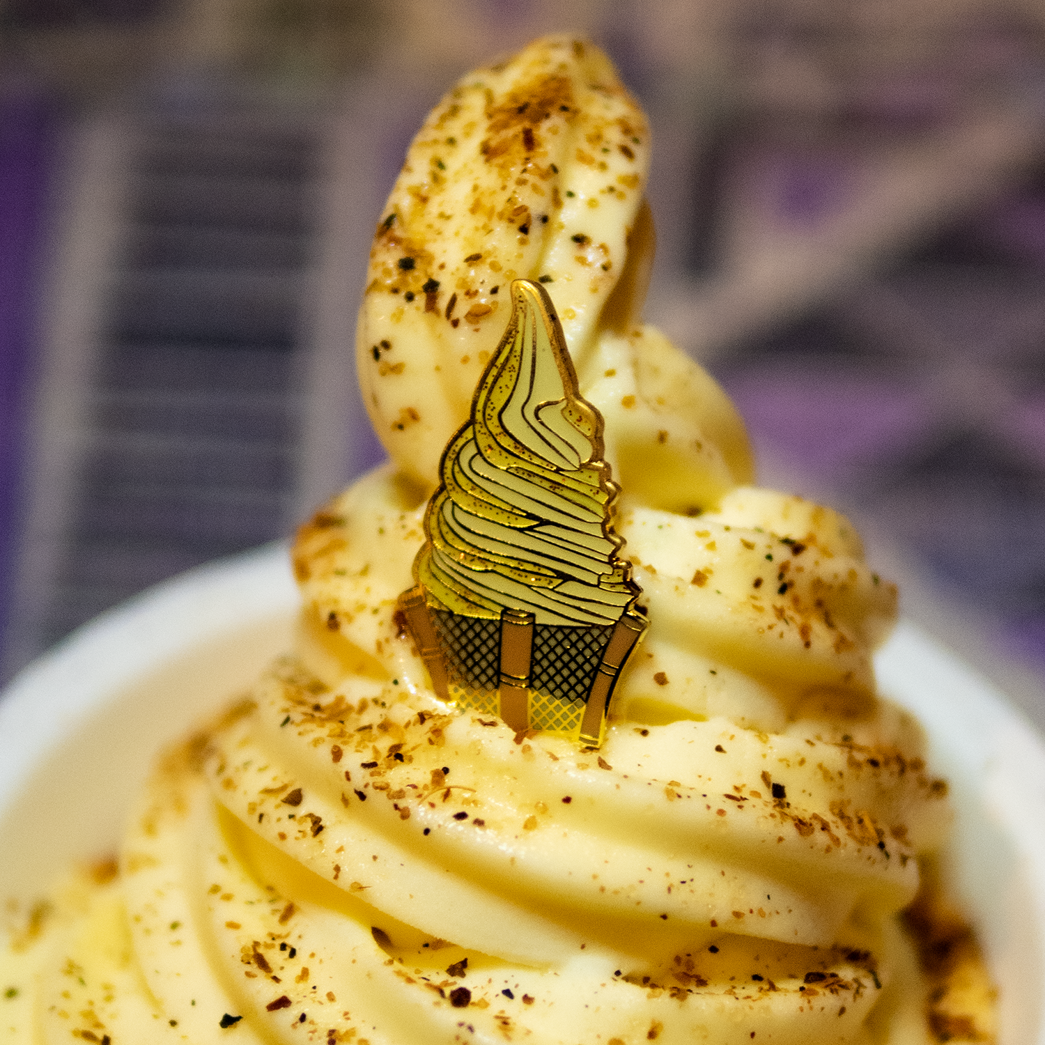 The iconic Tiki Whip pin in a new California-favorite twist. There's nothing quite as tasty as sprinkling on some spicy chili lime powder to plus the flavor of our favorite non-dairy soft-serve snack. The Hard Enamel Pin is 40MM Tall (1.57 Inches) and features Red Glitter and Rose Gold Metal Plating.