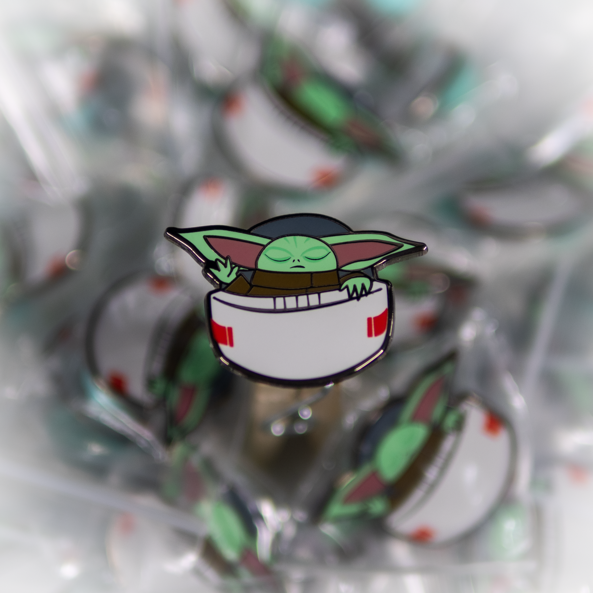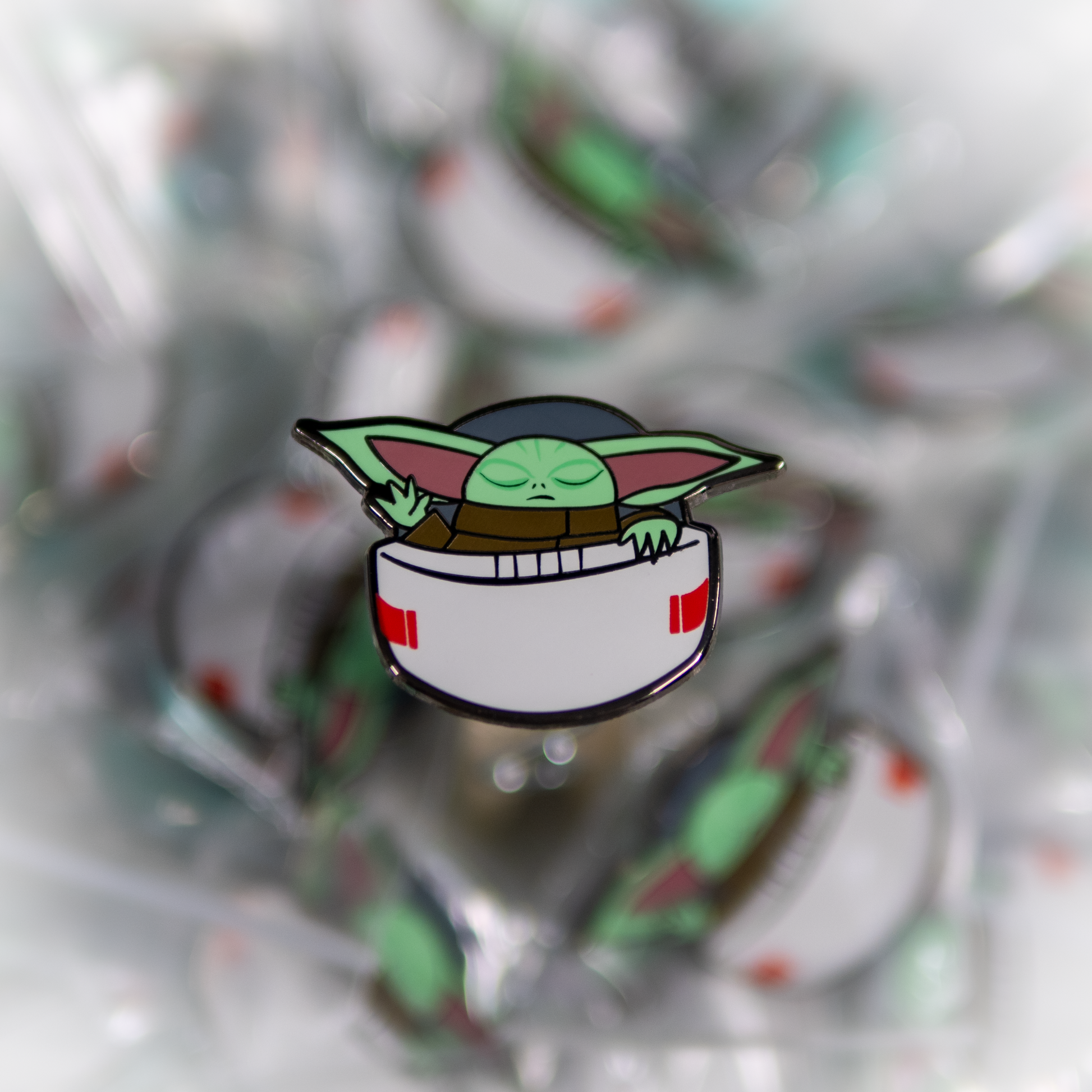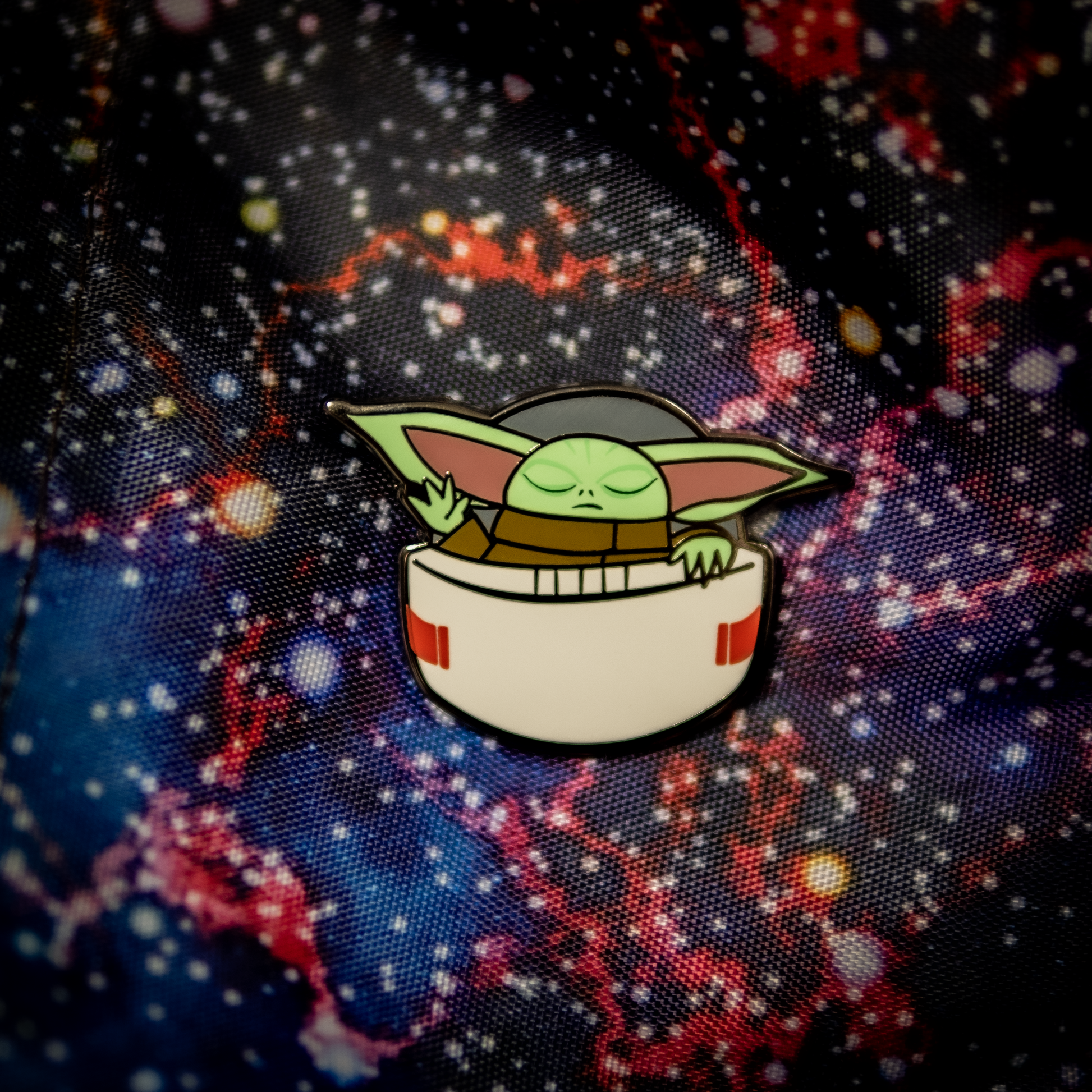 The Bounty, The Child, Baby Yoda, Grogu... this old man child (remember, he's 50) sure is cute. And such a friendly little fella. Floating in his pram this pin is ready to go on any adventure you can think of!