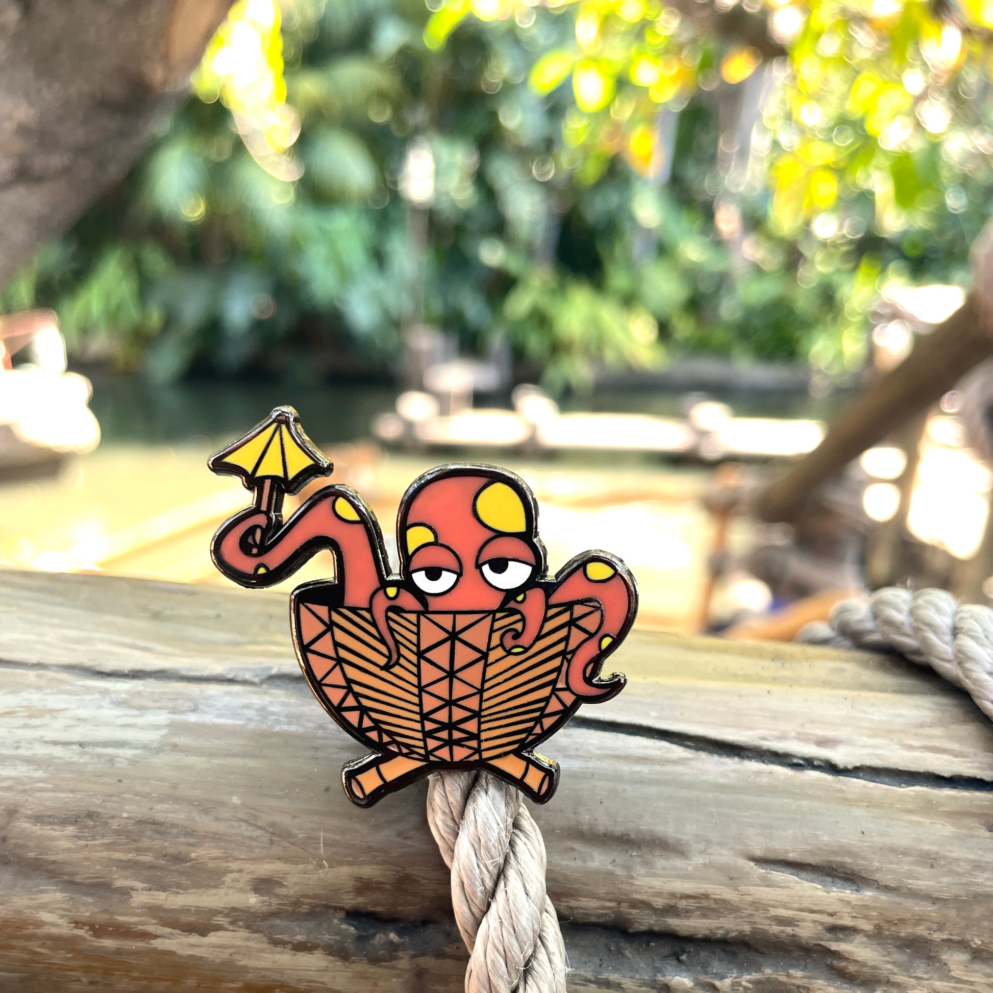 Orange Tipsy Tiki Octopus Pin
