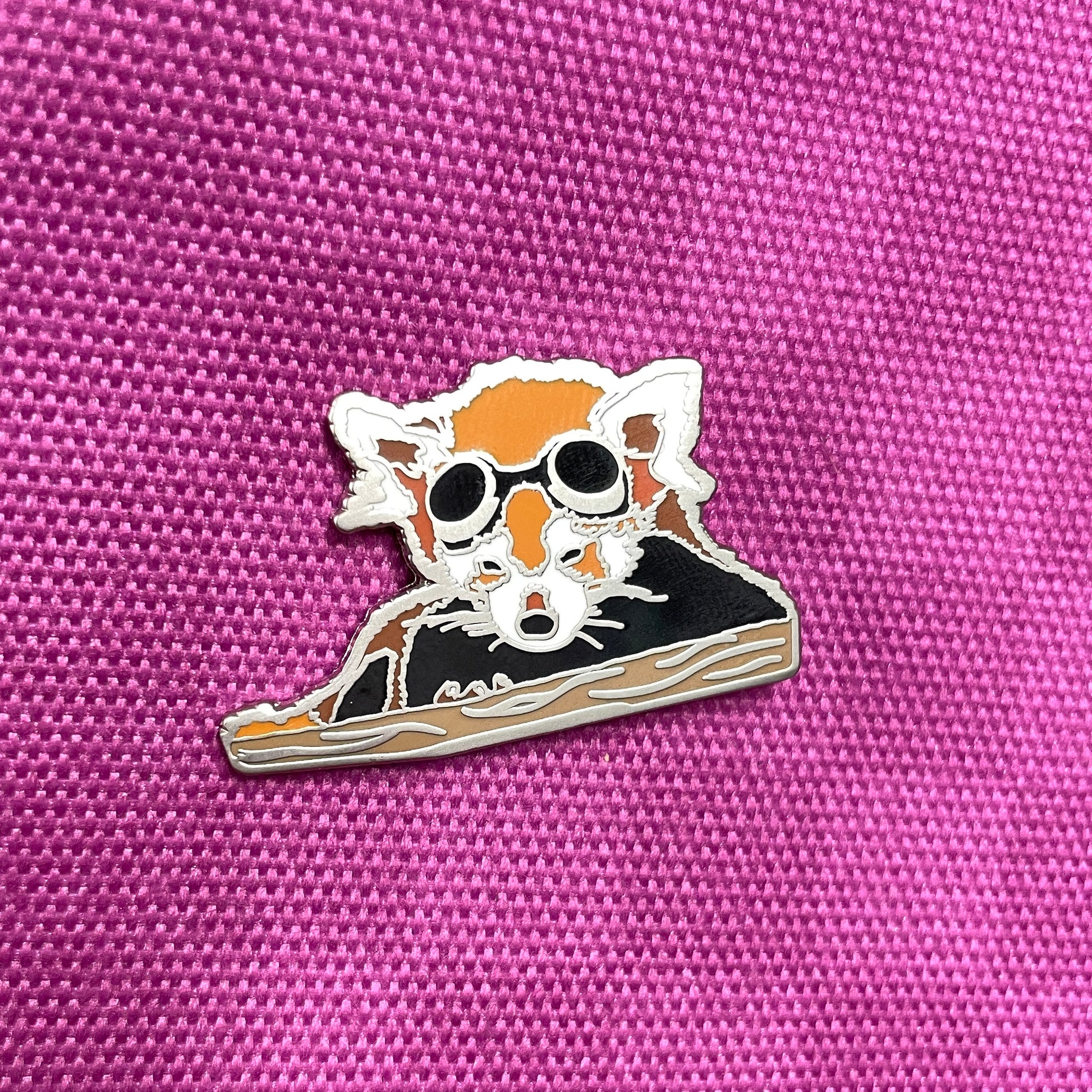 This Hard Enamel Pin is roughly 1.5 inches wide and features Hard Enamel and Matte Silver Plating.