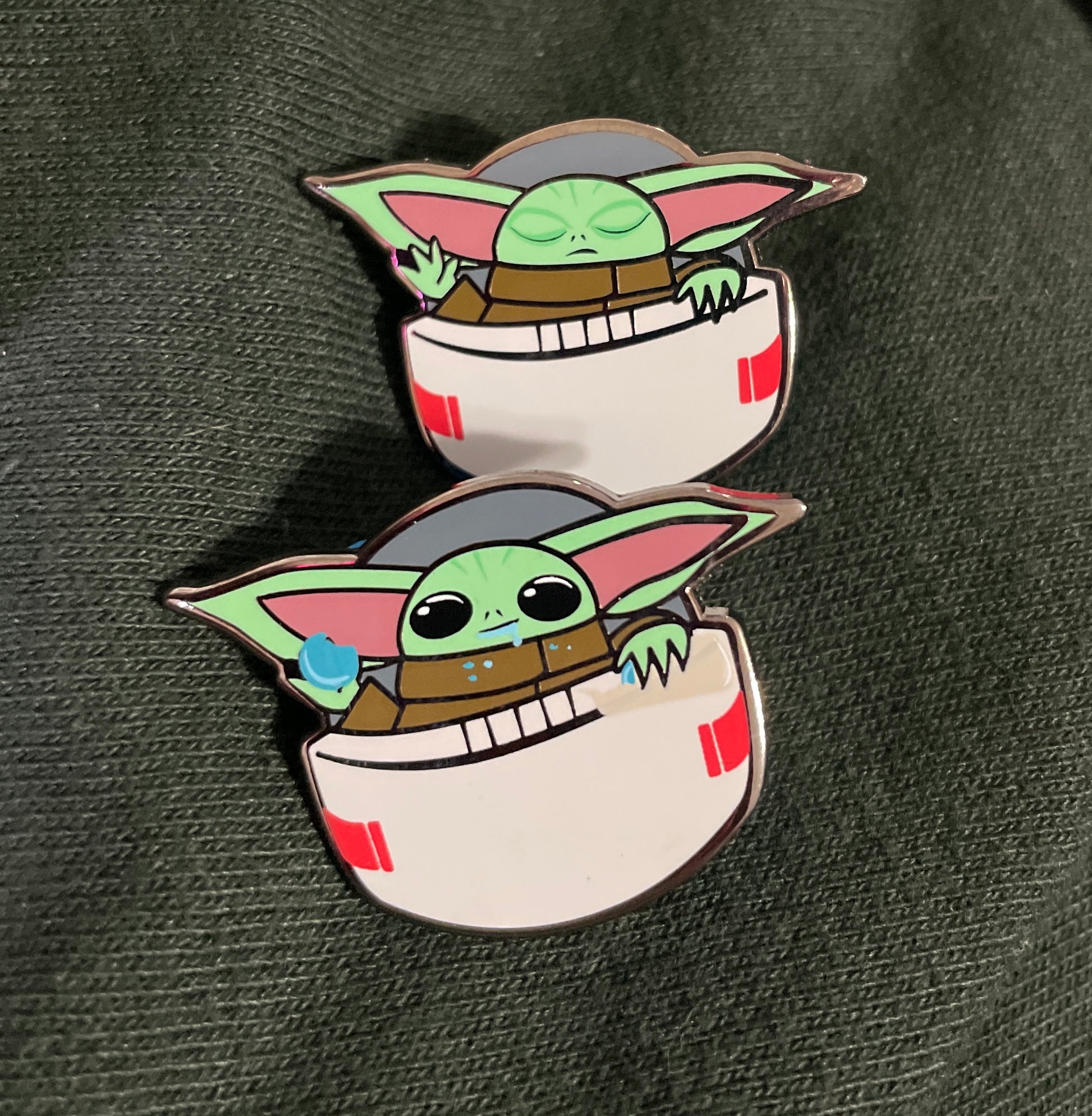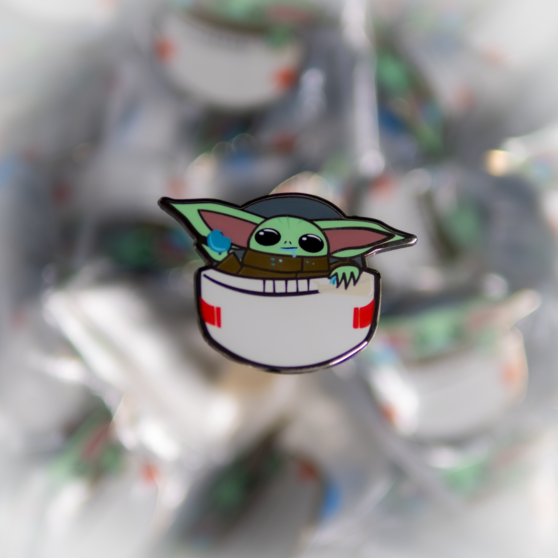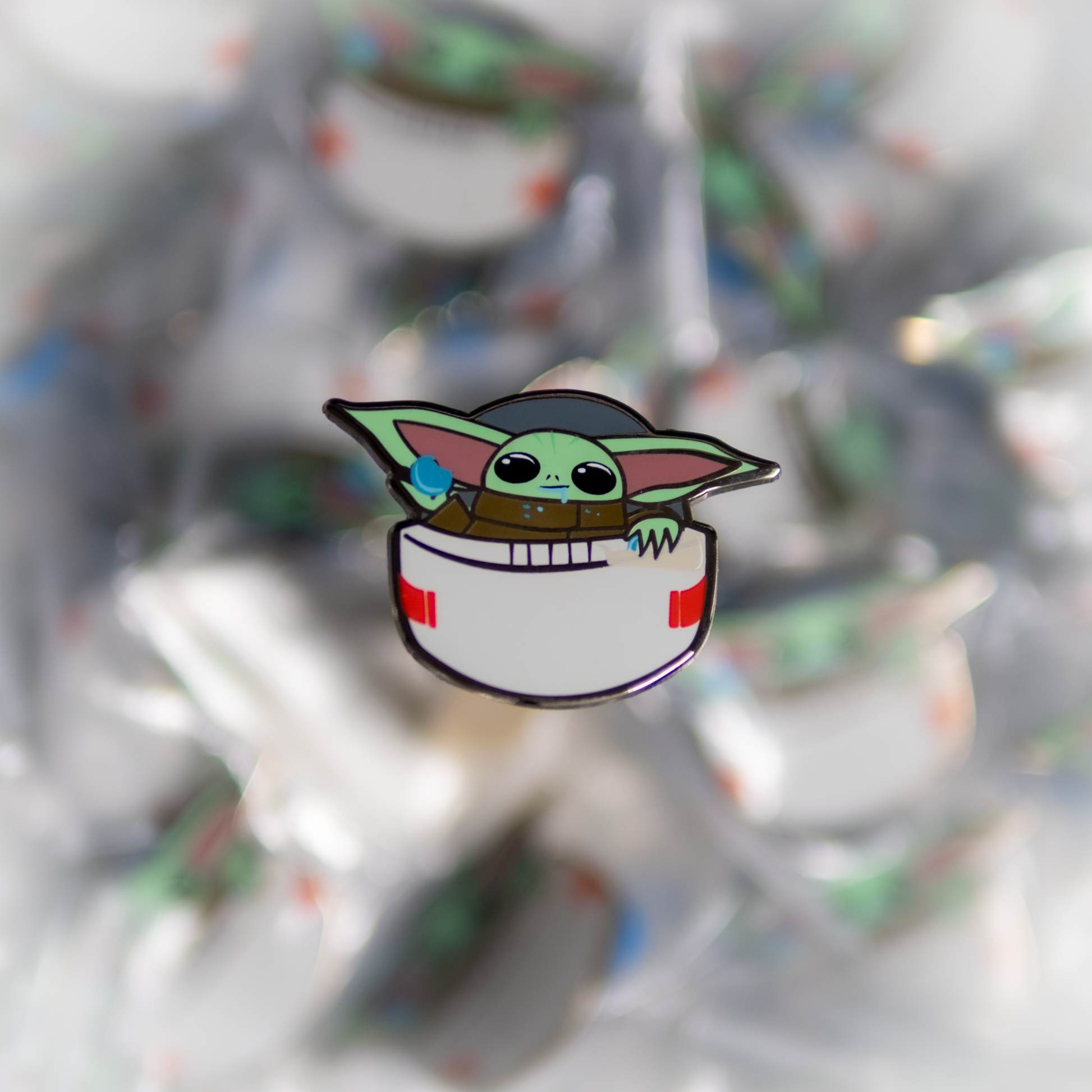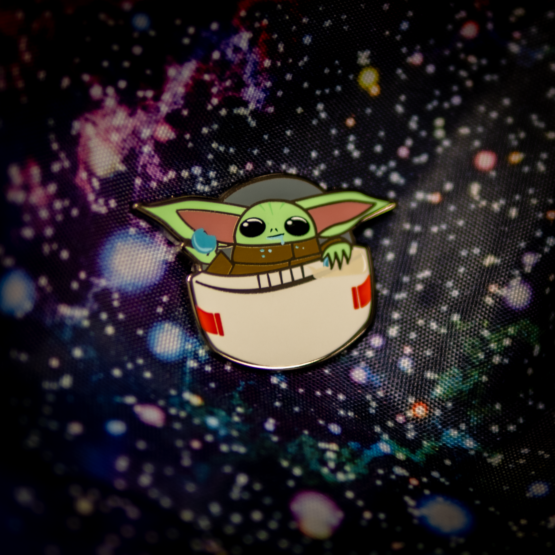 The Bounty, The Child, Baby Yoda, Grogu... this old man child (remember, he's 50) sure is cute. And such a friendly little fella. Floating in his pram this pin is ready to go on any adventure you can think of! Now, he even comes with those delicious blue cookies he "found" at school.