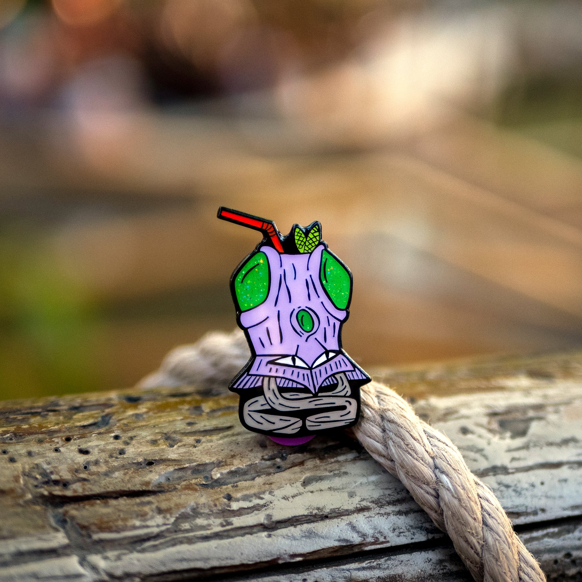 This Soft Enamel Pin is 37.7mm Tall (1.5 Inches) and features a Black Dip and Protective Epoxy Coat. This Shiny Variant is LIMITED to a very small quantity and features glitter fills in some areas!